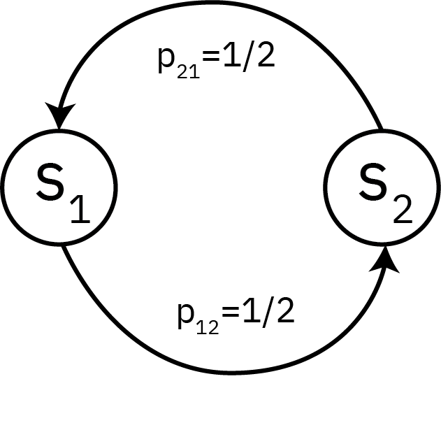 This stochastic process is a Markov chain if it satisfies the Markovian (or memoryless) property: \[\begin{align*}