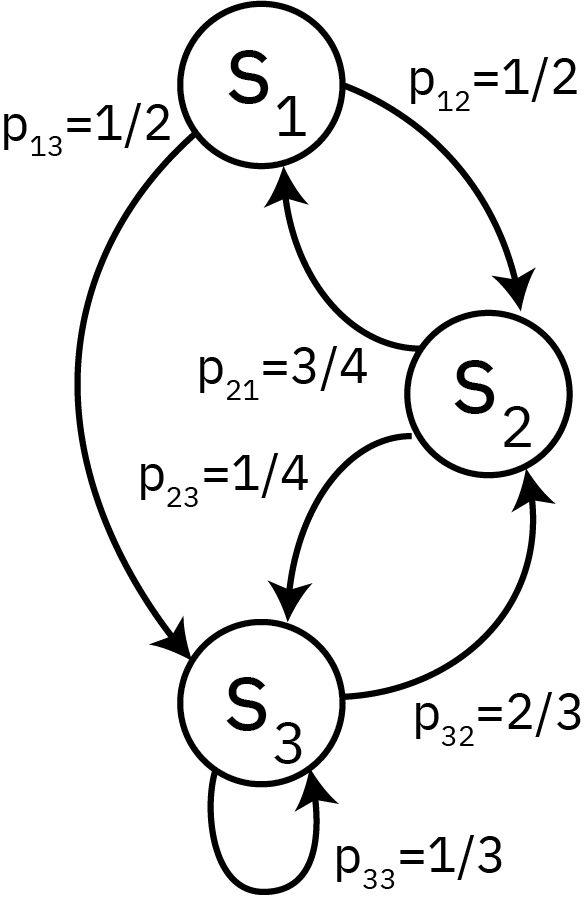 \(\mathbb{P}(s_i \to s_j) = p_{ij}\).